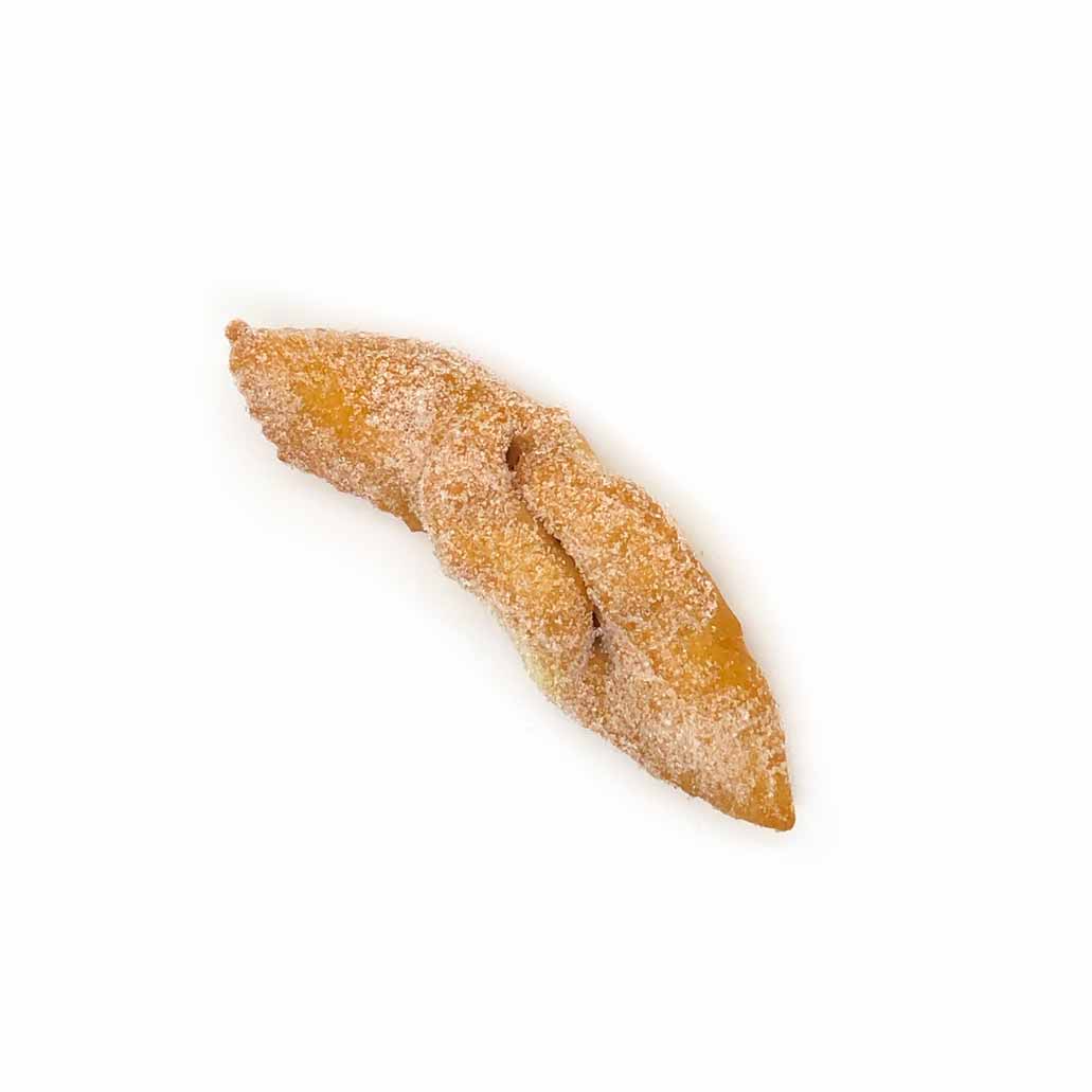 Bakad på vetemjöl och ägg, kokt i rapsolja och doppad i strösocker. Handsnurrad, spröd med mild citronsmak. Traditionell skånsk Julkaka.